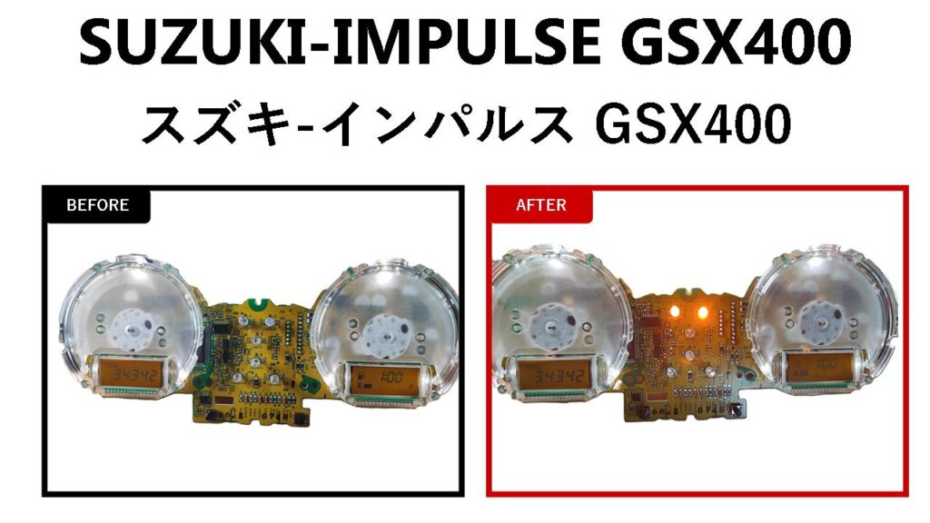 【スズキ インパルス(IMPULSE)GSX400】メーターのLEDが点灯しない!つかない!不点灯トラブル対応|LED打ち替え・交換・カスタム|メーター交換・修理| 大阪 門真 整備
