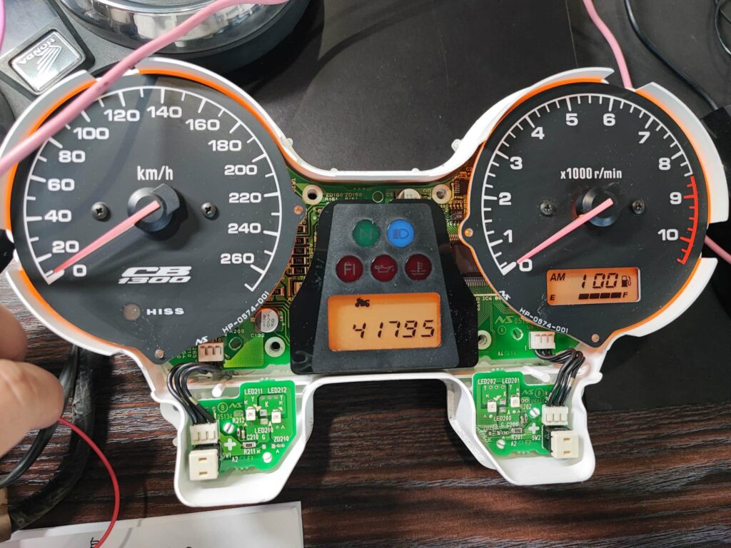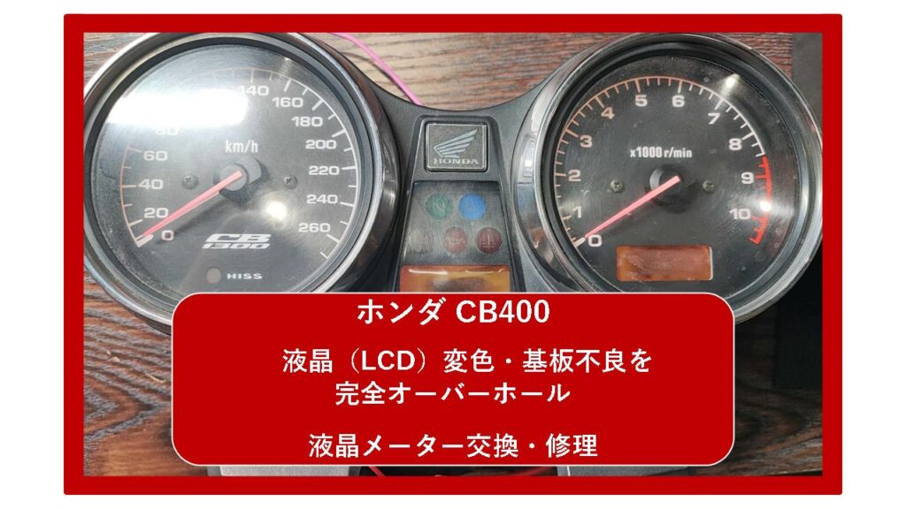 特に 液晶(LCD)の茶色変色 は、CB400のアナログメーターで非常に多い症状であり、内部の液晶が経年で焼けることが原因です。