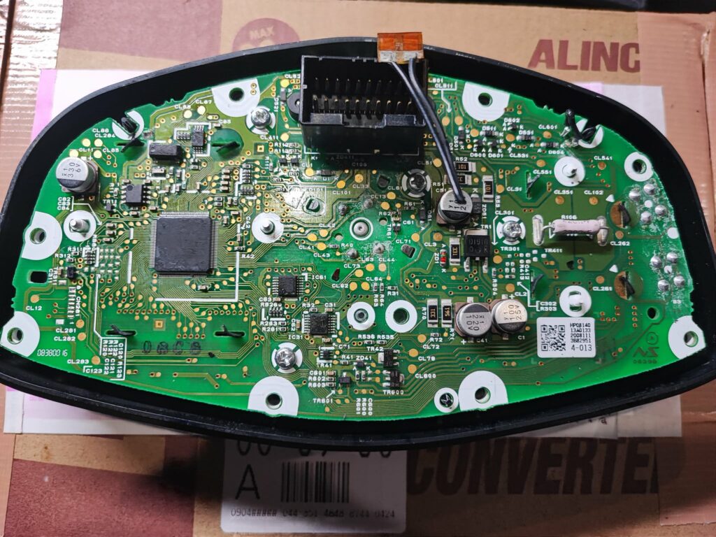 CBR600RR のメーター基板は、高密度で構成されています。