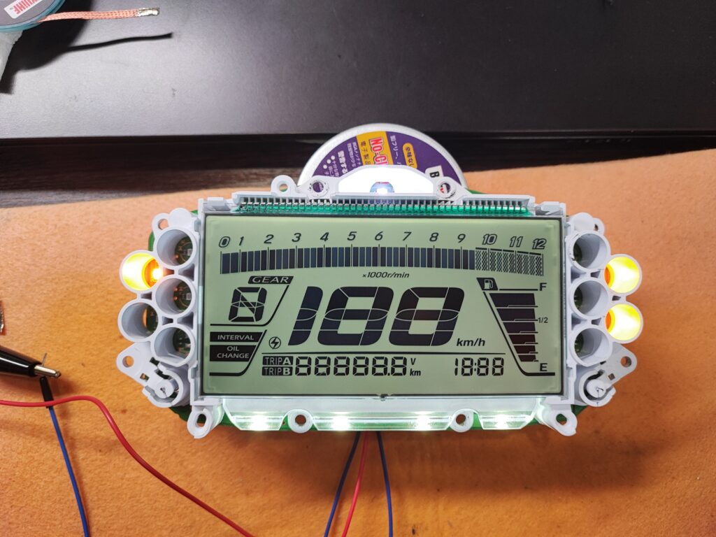 ここが伝わりにくいところですが、メーター内部は“電気が来たら点く”ほど単純ではありません。車両からの電源は、基板に入った瞬間に別の電圧へ変換され、安定化され、制御回路が起動し、液晶が初期化されて初めて表示が出ます。
